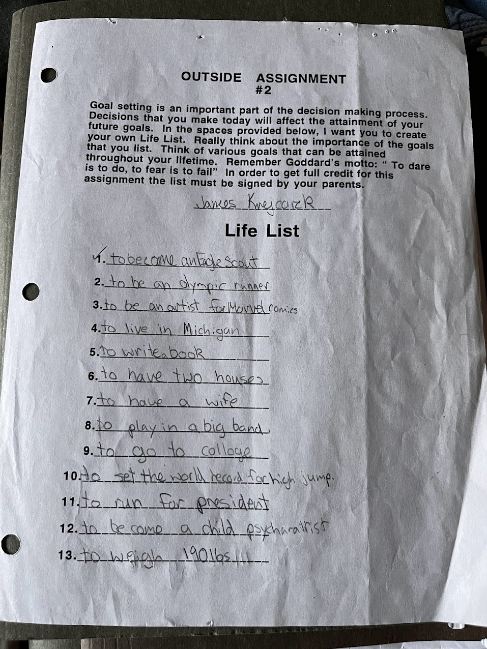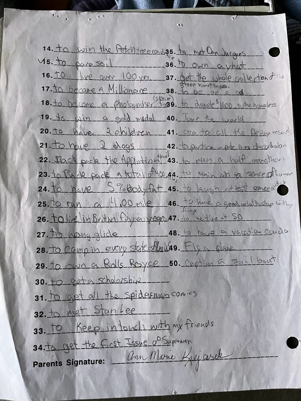 Here is my list from when I was 13.